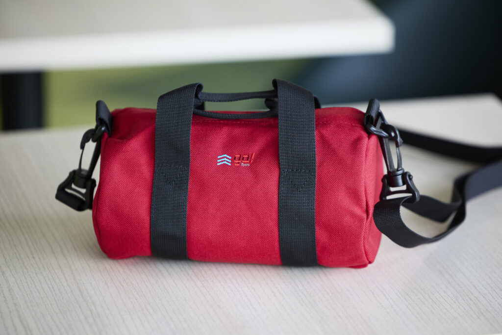 岡山土地倉庫では、創立90周年を記念し、次の100周年に向けて挑戦する特別企画を展開しています。その一環として、このたび 90周年オリジナルグッズ「ロールボストンバッグ」 を制作し、全従業員に配布いたしました。