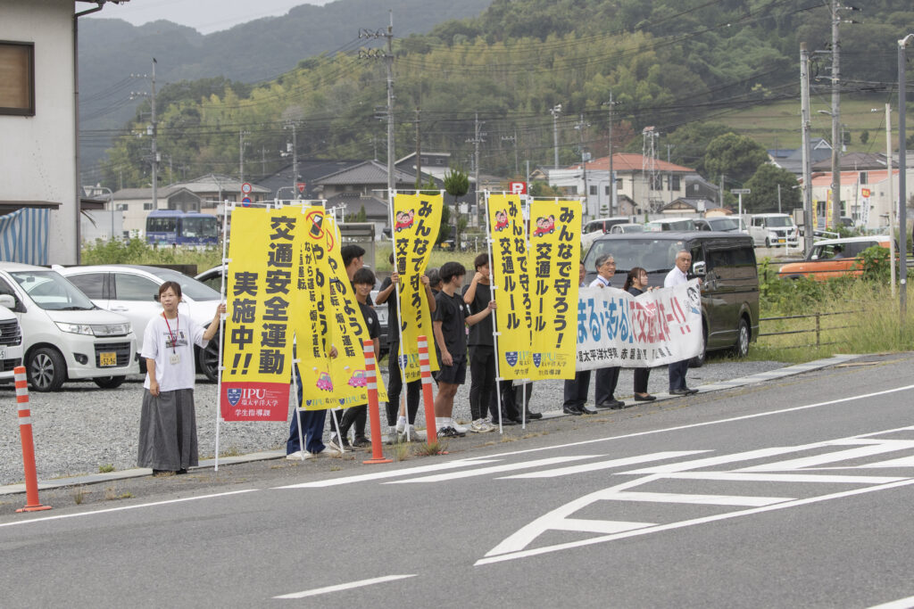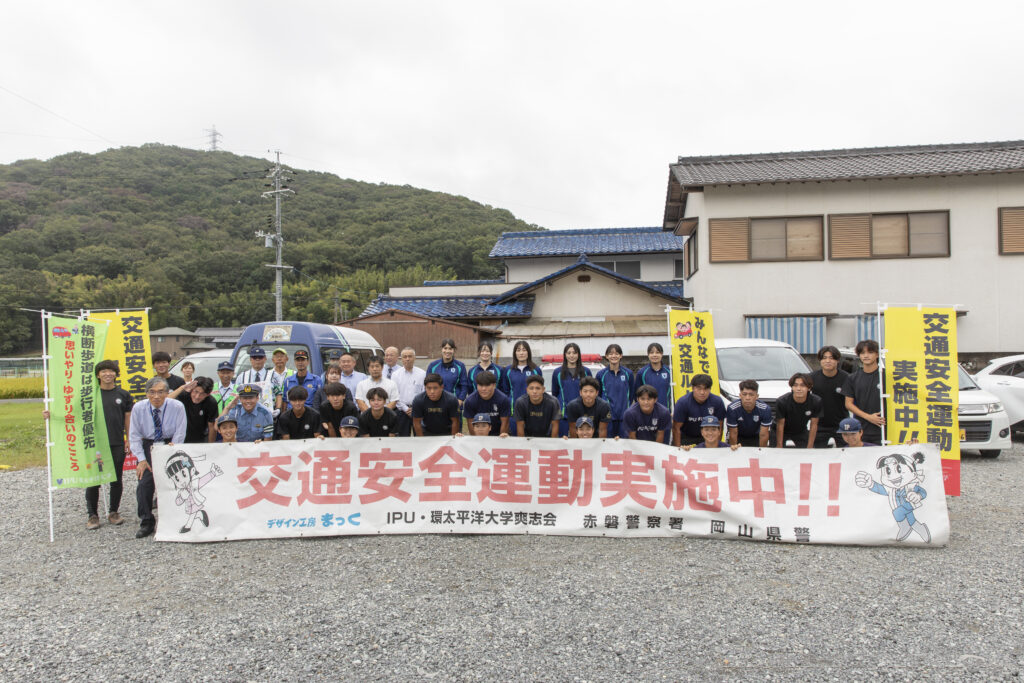 今回で4回目の参加となるこの活動は、岡山県警ご協力のもと学生の皆さんと地域住民の方々が一体となり、交通事故ゼロの実現を目指して啓発を行う取り組みです。