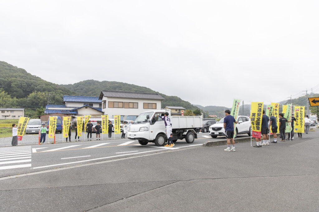 活動中は 参加される学生さん達のさわやかな挨拶と、熱意あるフレッシュな呼びかけが道路に響き、朝の通勤通学の時間に窓を開けて対応してくださるドライバーの皆様に安全運転への意識向上への思いが伝わったのではないでしょうか。