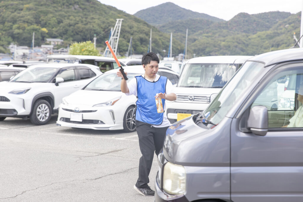 このイベントは「おいしい牡蠣を一年中」をテーマに日生町の地域活性化と魅力向上を目的として開催されております。活動内容としては、お越し下さるお客様の車の誘導、各ブースの販売サポートを、岡山商科大学の学生さんや他の参加企業のみなさまと連携して行いました。